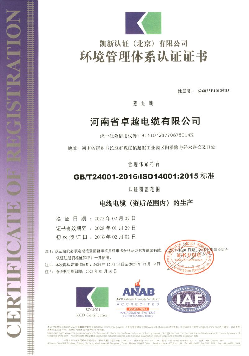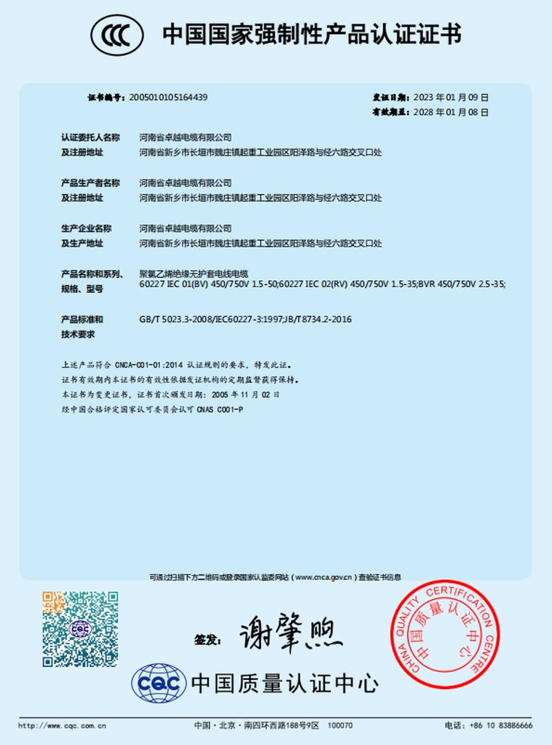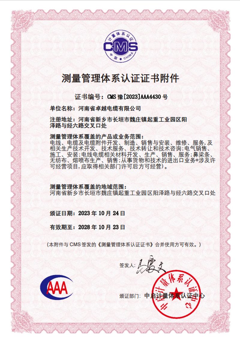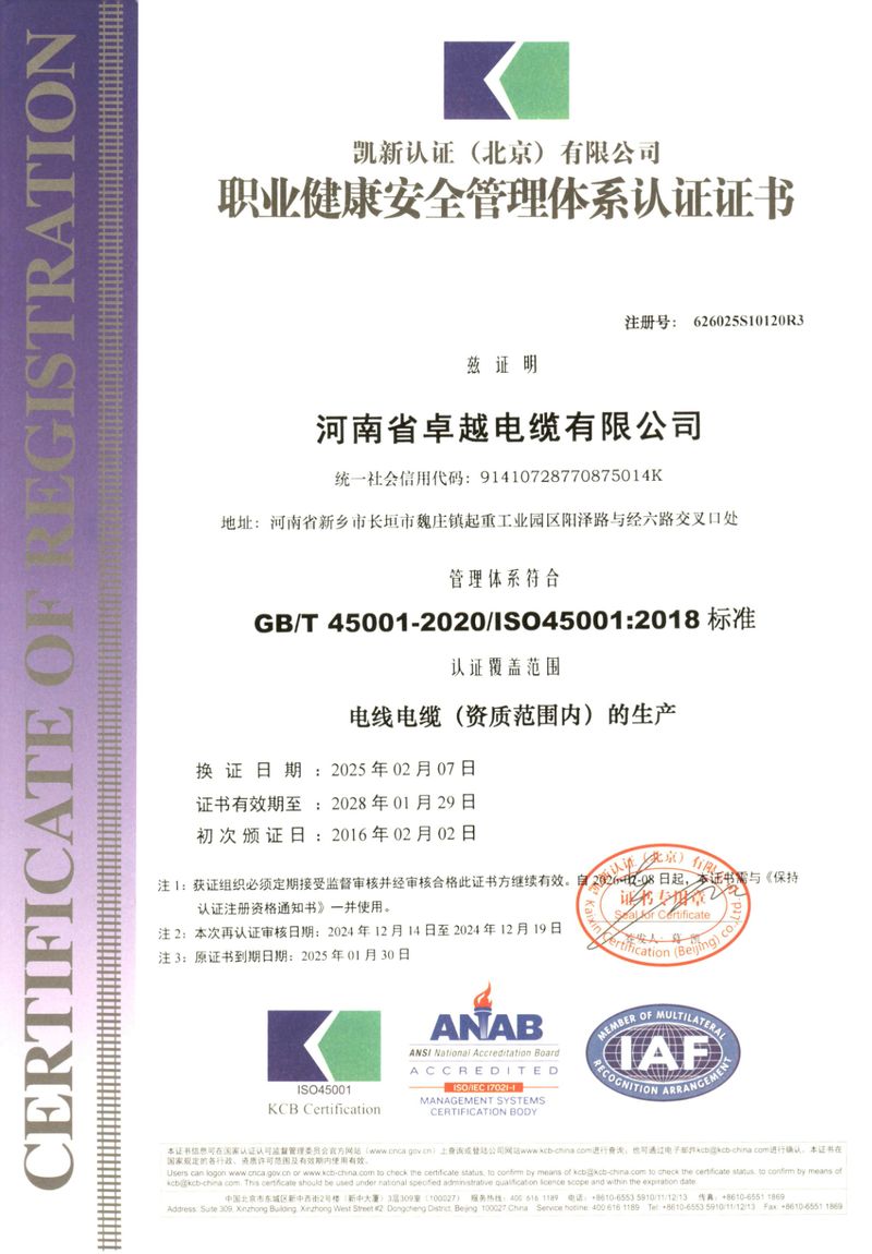 河南省卓越電纜有限公司是一家集生產(chǎn)、研發(fā)、銷售、服務(wù)為一體的河南省**技術(shù)企業(yè),創(chuàng)建于2003年,位于長垣縣起重工業(yè)園區(qū),占地面積:54000 m2;總資產(chǎn)12000多萬元,年產(chǎn)值5.2億元;主要產(chǎn)品有:各種型號規(guī)格的起重機(jī)扁平軟電纜、橡套軟電纜、耐高低溫電纜、聚氯乙絕緣電線電纜、控制電纜、電力電纜、船用電纜、礦用電纜、阻燃及耐火電纜、計算機(jī)電纜等;產(chǎn)品廣泛用于起重、鋼鐵、軍事、化工、煤礦、建筑、特種裝備等行業(yè)及領(lǐng)域。通過CCC認(rèn)證、生產(chǎn)許可證、GB/T45001-2020/ISO45001:2018三體系認(rèn)證等;中國質(zhì)量萬里行理事單位。并被授予河南省電工行業(yè)誠信口碑單位、河南省科技型中小型企業(yè)等榮譽(yù)稱號,入選“2017年度河南省“專精特新”中小型庫。